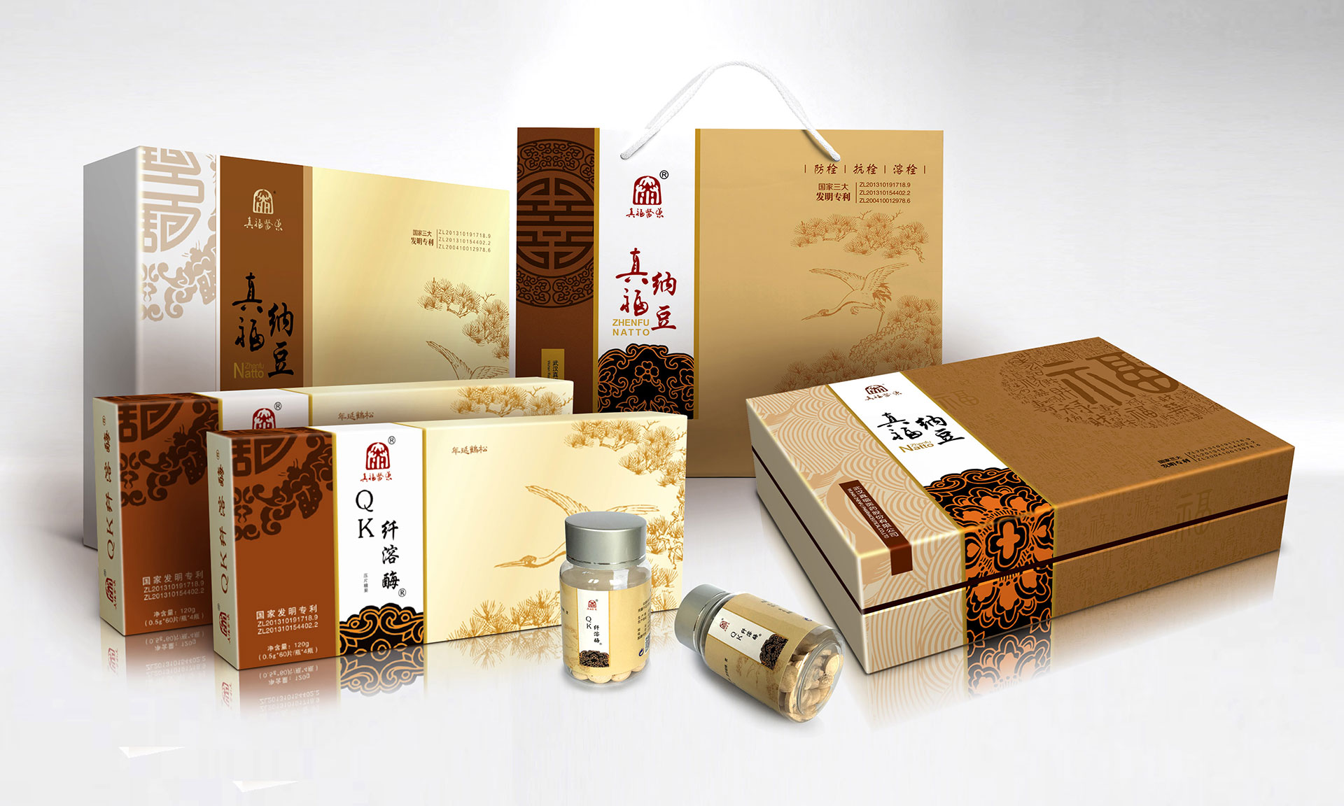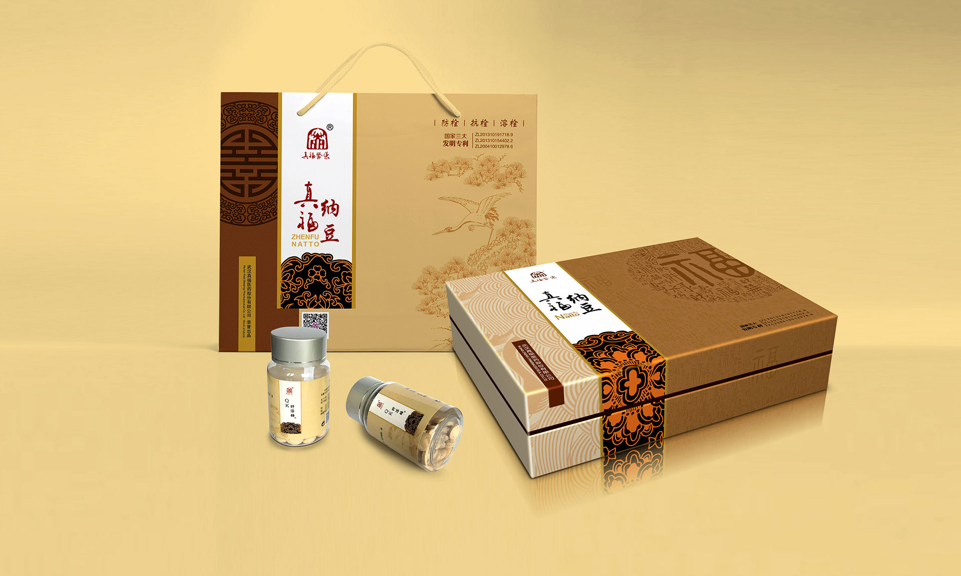 心腦血管疾病是人類健康的頭號(hào)殺手,中國(guó)人的死亡80%就是心腦管疾病。武漢大學(xué)生命科學(xué)院通過(guò)現(xiàn)代生物技術(shù),在農(nóng)產(chǎn)品大豆中提煉出枯草桿菌研制成的真福納豆,獲得國(guó)家三項(xiàng)發(fā)明專利。該產(chǎn)品對(duì)緩解和輔助治療心腦血管疾病有著顯著的效果,同時(shí)不對(duì)人產(chǎn)生任何傷害。是一種綠色健康的產(chǎn)品。信立浩達(dá)設(shè)計(jì)團(tuán)隊(duì)對(duì)產(chǎn)品價(jià)值深度挖掘,在產(chǎn)品包裝設(shè)計(jì)上用中國(guó)傳統(tǒng)的“福祿壽禧、松鶴延年”文化來(lái)表達(dá),同時(shí)反復(fù)訴求:讓中國(guó)人多活十年!這樣產(chǎn)品的價(jià)值,通過(guò)福壽文化、松鶴文化得到了形象的傳遞,深受中老年人的心理認(rèn)同。