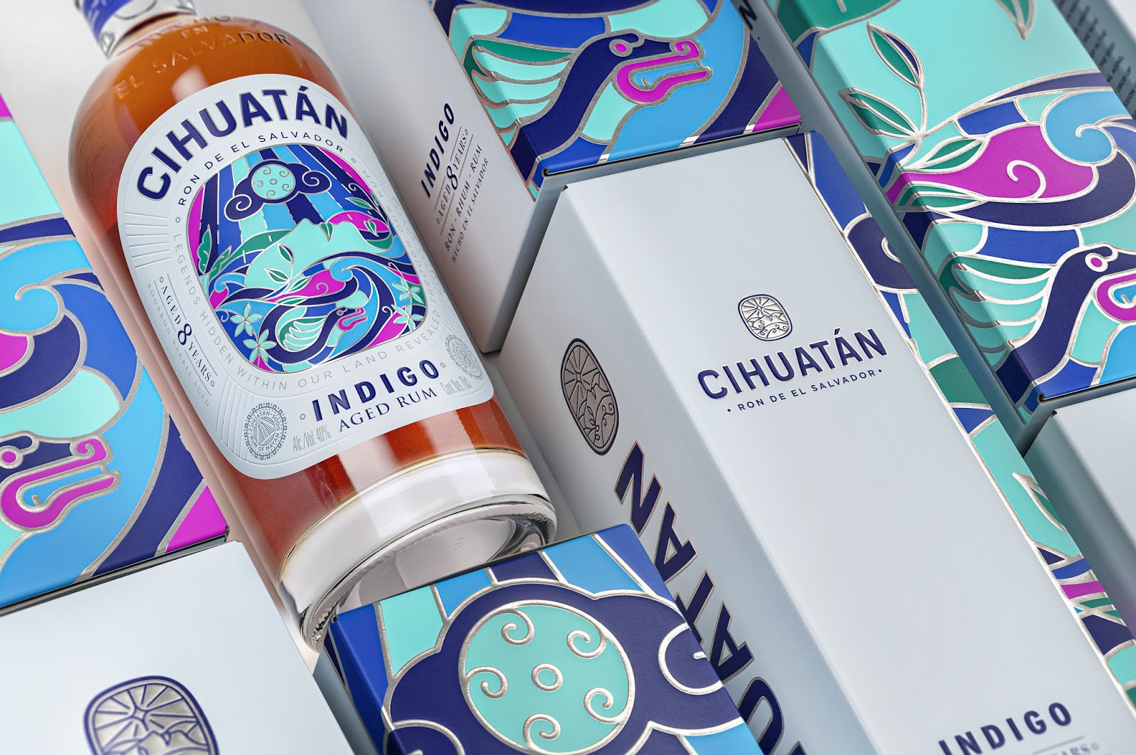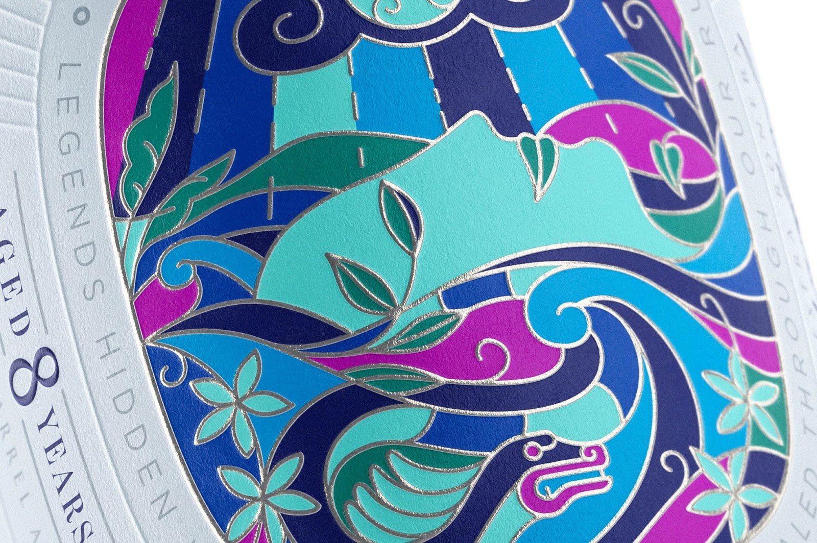 Cihuatan是一個(gè)來自薩爾瓦多的特制朗姆酒品牌。在納瓦特方言中,“Cihuatán”的意思是“女神熟睡的土地”。通過插圖刻畫鮮花綻放過程中的力量和美麗,通過女神睡顏表達(dá)女神的繁衍生息的力量。在工藝上“女神”的輪廓運(yùn)用燙銀和凸紋的技術(shù),讓畫面有了些許立體感,增強(qiáng)畫面層次。色彩上,采用當(dāng)?shù)靥赜械呐屠渖钆浞绞剑屛幕姆?hào)更加深入人心。