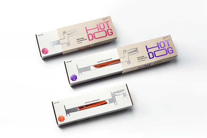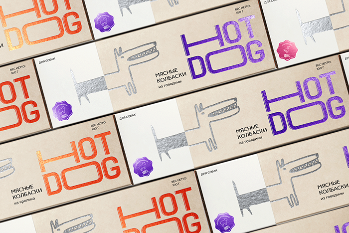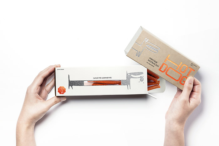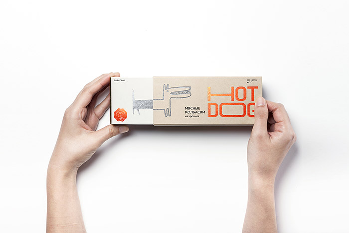 這是David Hovhannisyan設(shè)計的寵物狗香腸包裝,品牌文字形象生動,很好的體現(xiàn)了香腸被拉出來的不斷變長的感受,同時兼具識別性,充滿趣味性。