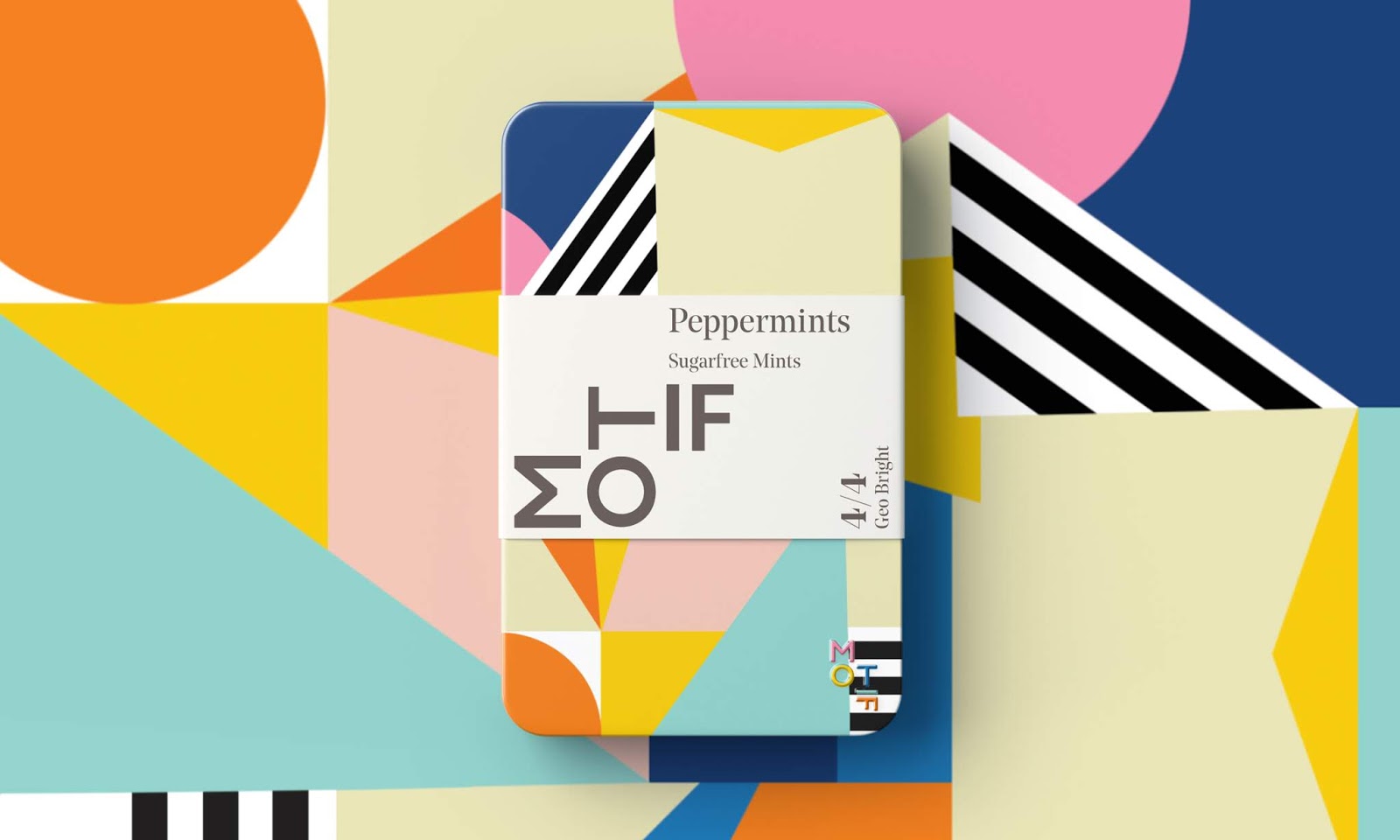 Motif薄荷糖包裝設計,使用抽象的幾何元素與風景人物進行換位的方式,突出了薄荷糖,口味刺激多變的特點。