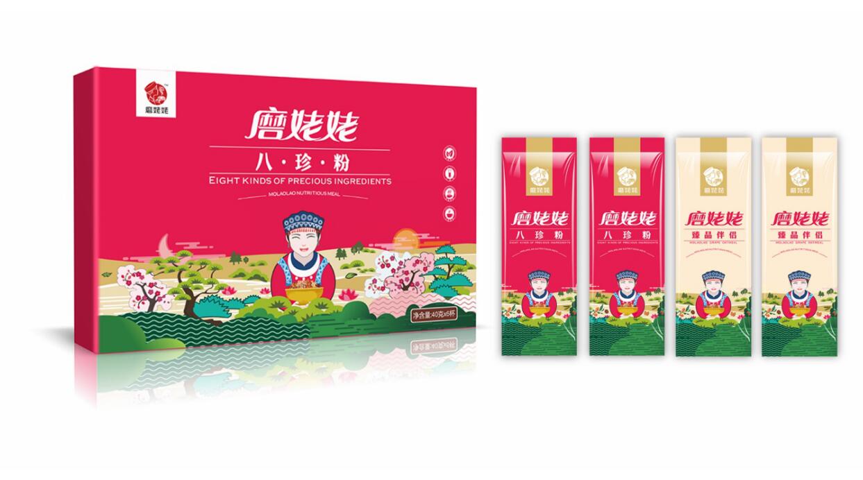 當(dāng)產(chǎn)品在市場(chǎng)上得到消費(fèi)者的認(rèn)同后,一個(gè)偶然的機(jī)會(huì),信立浩達(dá)與磨姥姥達(dá)成合作,為磨姥姥提供品牌形象設(shè)計(jì)、產(chǎn)品包裝設(shè)計(jì),用文創(chuàng)品牌的思維,塑造了磨姥姥新的品牌形象,45天內(nèi),我們從武漢到長(zhǎng)沙,從長(zhǎng)沙到武漢,經(jīng)過(guò)了大量的市場(chǎng)調(diào)研、腦力風(fēng)暴,挖掘了中國(guó)傳統(tǒng)食文化、養(yǎng)生文化,設(shè)計(jì)出了磨姥姥的品牌主畫(huà)面,品牌標(biāo)志、系列的產(chǎn)品包裝設(shè)計(jì),還有招商網(wǎng)站、招商畫(huà)冊(cè)、宣傳廣告、海報(bào)等:益元八珍營(yíng)養(yǎng)早餐, 一天一杯磨姥姥,健康快樂(lè)一整天!山藥薏米芡實(shí),我要想吃就吃不長(zhǎng)肉!紅豆薏米杏仁,我要貌美如花人人夸!核桃芝麻黑豆,養(yǎng)發(fā)烏發(fā)。武漢農(nóng)產(chǎn)品包裝設(shè)計(jì)公司信立浩達(dá)用品牌設(shè)計(jì)的力量協(xié)助磨姥姥在全國(guó)招商成功!